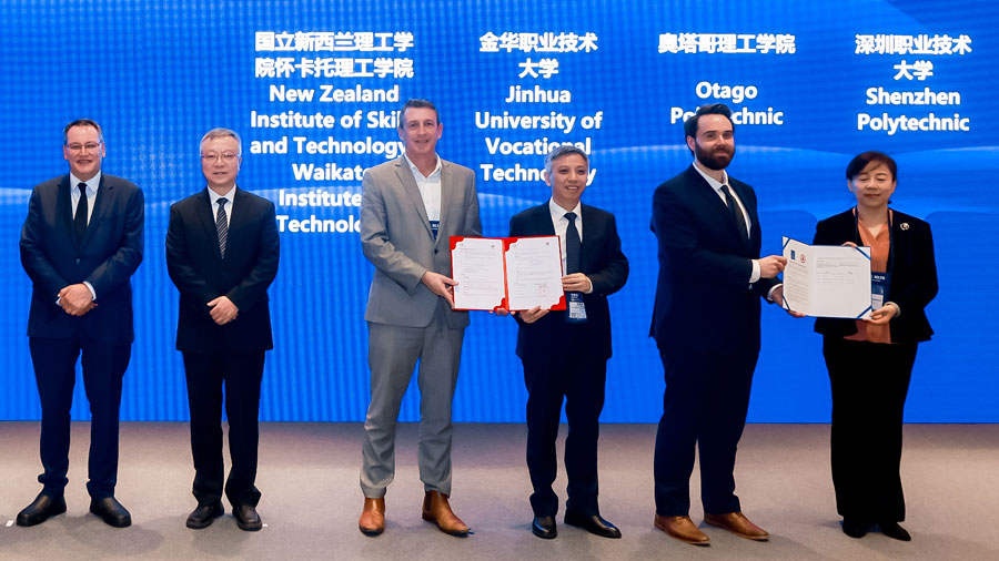 The deal was signed at the 2025 China Annual Conference & Expo for International Education (CACIE 2025), which Otago Polytechnic attended as part of a delegation of tertiary institutions led by Dr Shane Reti, Minster of Universities and Science, Innovation and Technology.