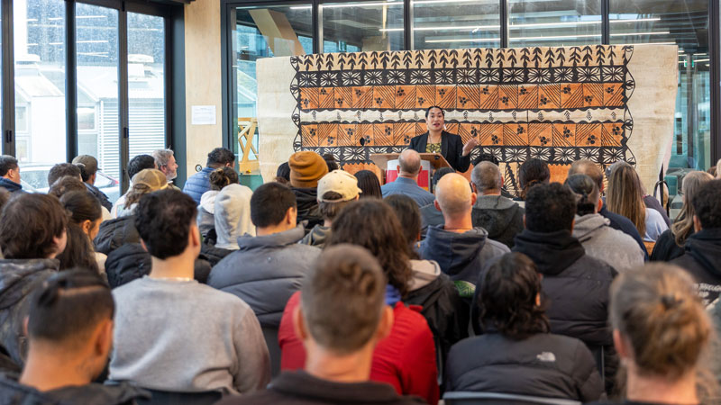The ceremony brought together mana whenua, members of the Pasifika community, kaimahi, Pasifika mentors, and ākonga including those on the He Toki programme.